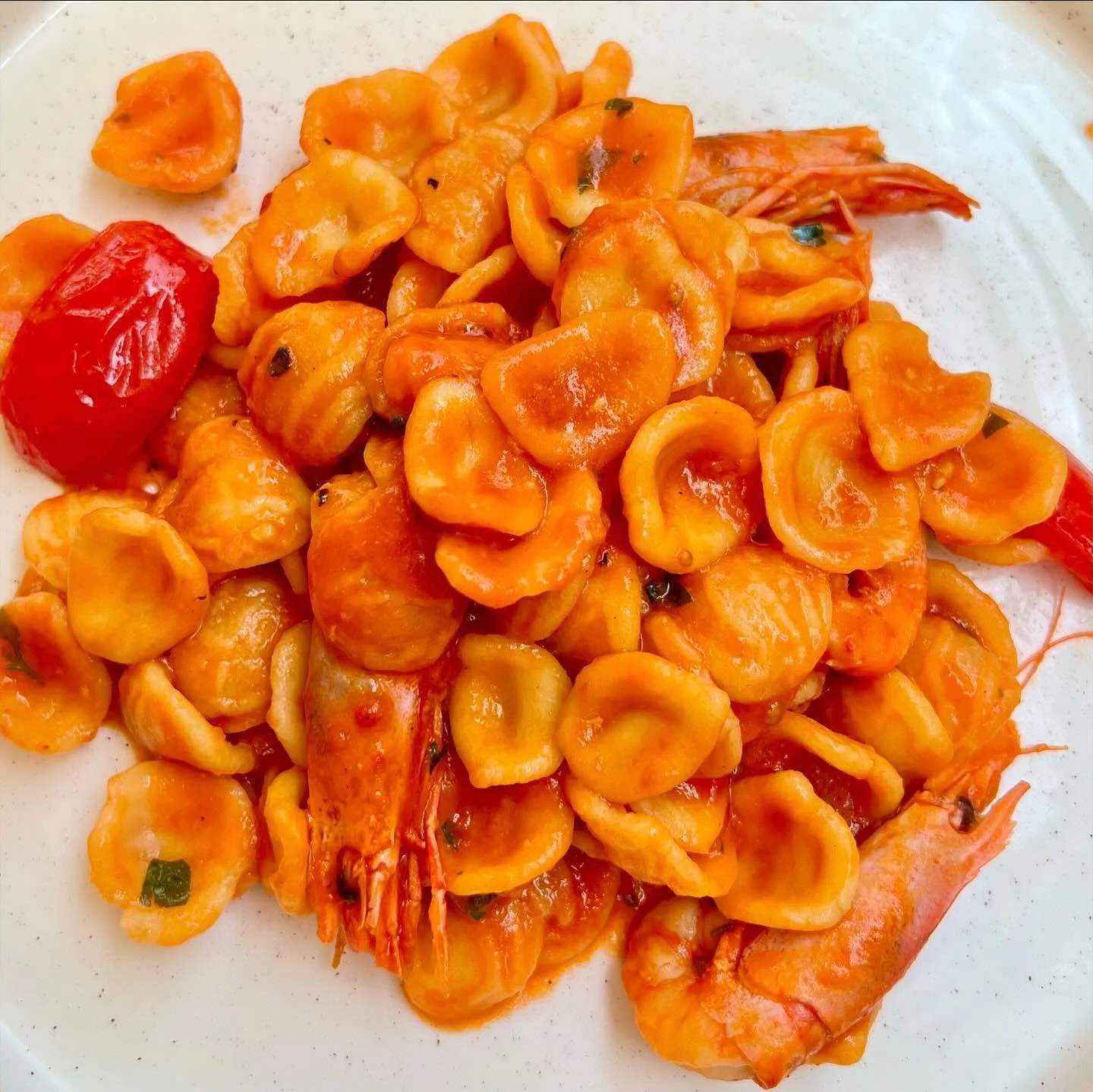 Here is a wonderful example sauced with the prized Gambero Rosso, very sweet red prawns, these were caught in Gallipoli on the Ionian coast which is just an hour away.
